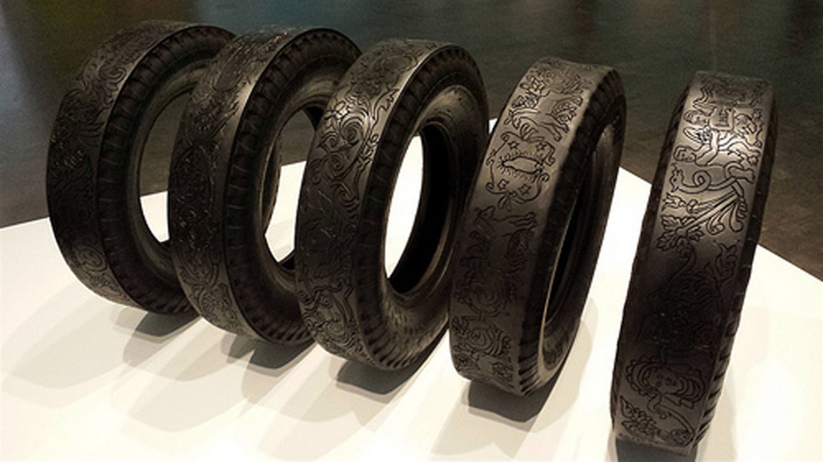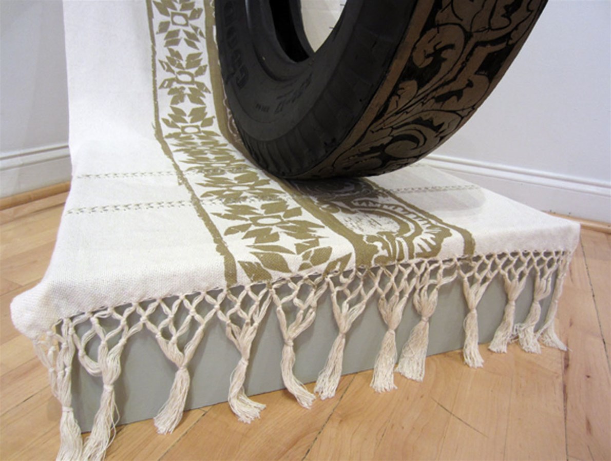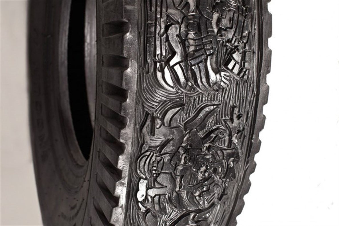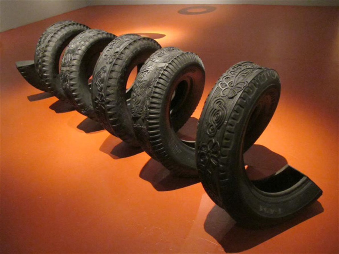 “En sus obras destacan llantas con estelas de motivos prehispánicos, intervenidas con hoja de oro y chicles masticados de colores intensos y únicos, carros y camioncitos de madera pintados o vestidos que los resignifican, papel picado y pintura sobre muros que exploran la relación entre el color y la sombra”, comentó.