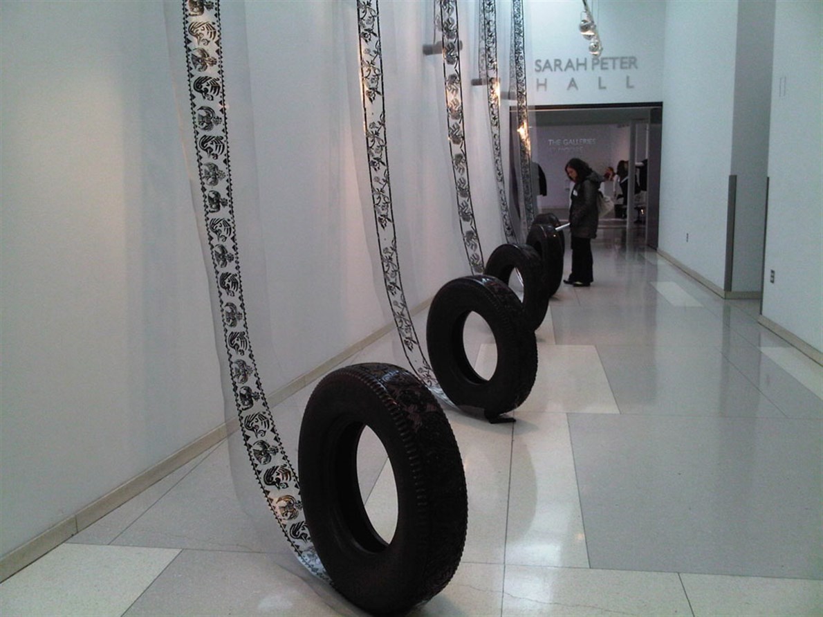Mencionó que desde hace más de 10 años, la artista se ha especializado en la elaboración de un discurso crítico acerca de la resemantización local y cotidiana de símbolos y ritos de la cultura del consumo global como los automóviles y los tatuajes.