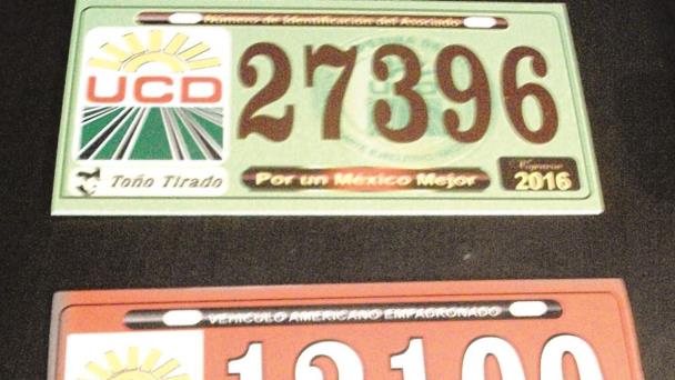A partir del día de ayer a indicaciones de la dirigencia Nacional de la Unión Campesina Democrática, el costo de placas y engomados para los residentes fronterizos dio un giro para retroceder y situarse en oferta a mil pesos color roja, mientras que para circulación en el interior del país se sitúan igual es decir a 2 mil 500 pesos color verde.