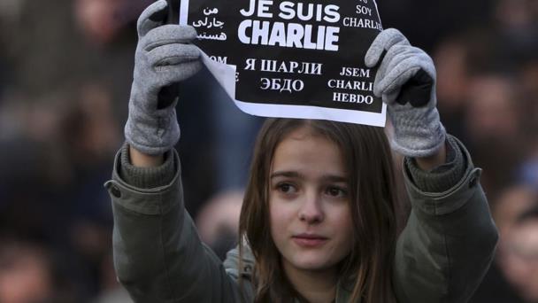 Los homenajes de los manifestantes a Charlie Hebdo saltaban por doquier. Alguno, muy en su línea: “¿Tengo derecho a dibujar el culo de Mahoma?”, se leía en una pancarta.