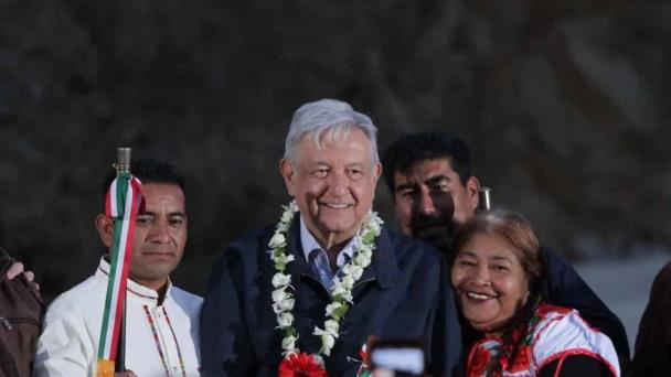López Obrador fue vestido con un jorongo café de lana, y se le entregó el bastón de mando