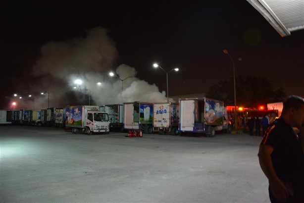 Los guardias retiraron otras unidades que estaban junto al camión afectado para prevenir que resultaran afectadas, siendo otro camión más que también resultó con daños menores.