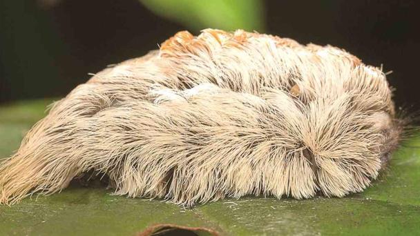 Estas orugas, llaman la atención porque al estar cubiertas de pelaje suave por lo que parecen de peluche, sin embargo bajo esta apariencia, esconden espinas venenosas.