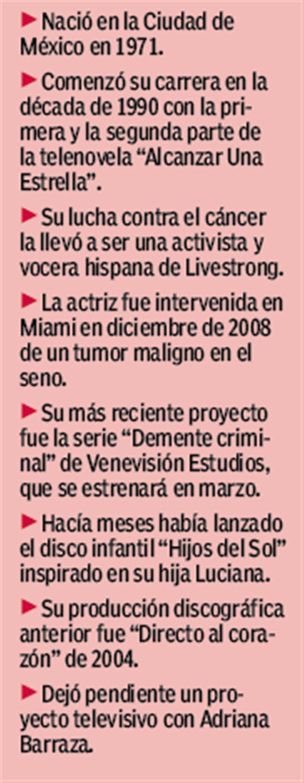 Rojas, quien de manera valiente desafió la enfermedad en diferentes etapas desde el año 2008, dio su último suspiro en su casa, rodeada del amor de sus familiares, de su prometido y de sus amigos más allegados, señaló ayer en un comunicado la firma Latin We.