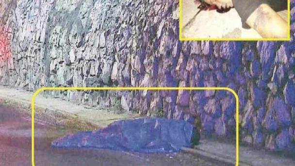 El ahora occiso, quien usaba tatuajes en los brazos, y vestía playera negra, pantalón de mezclilla y calcetines negros, carecía de calzado en el momento del hallazgo.