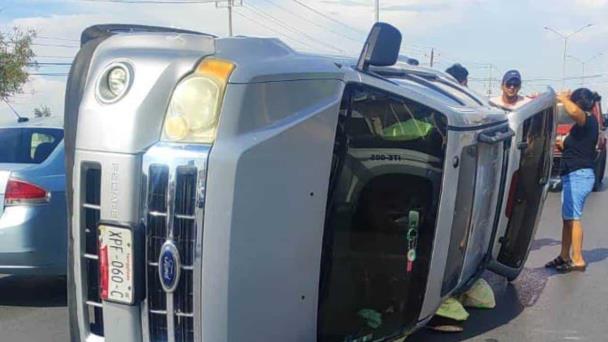 La camioneta Ford Escape terminó su trayectoria volcada sobre la cinta asfáltica en el carril central del bulevar Miguel Hidalgo.