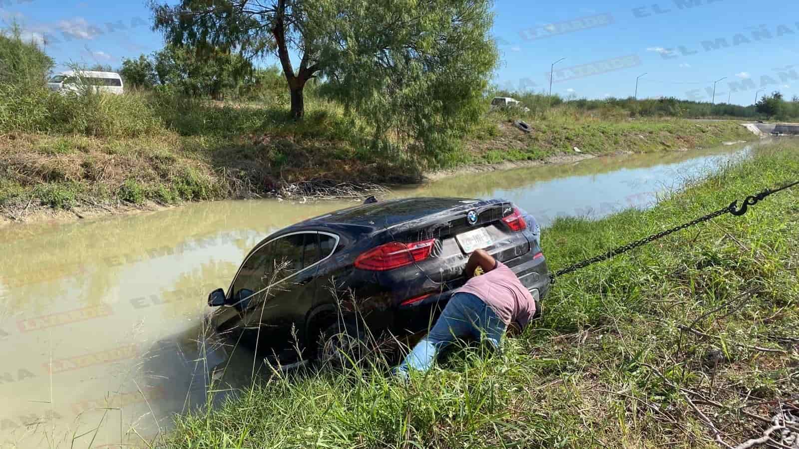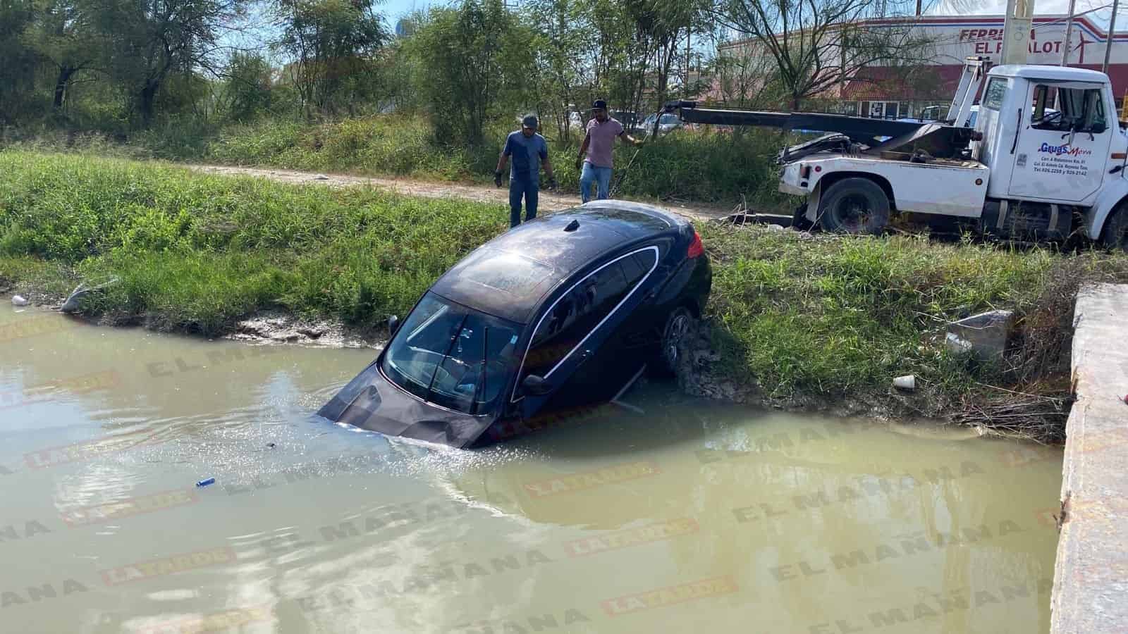 Cae lujoso auto a canal al evitar chocar contra unidad