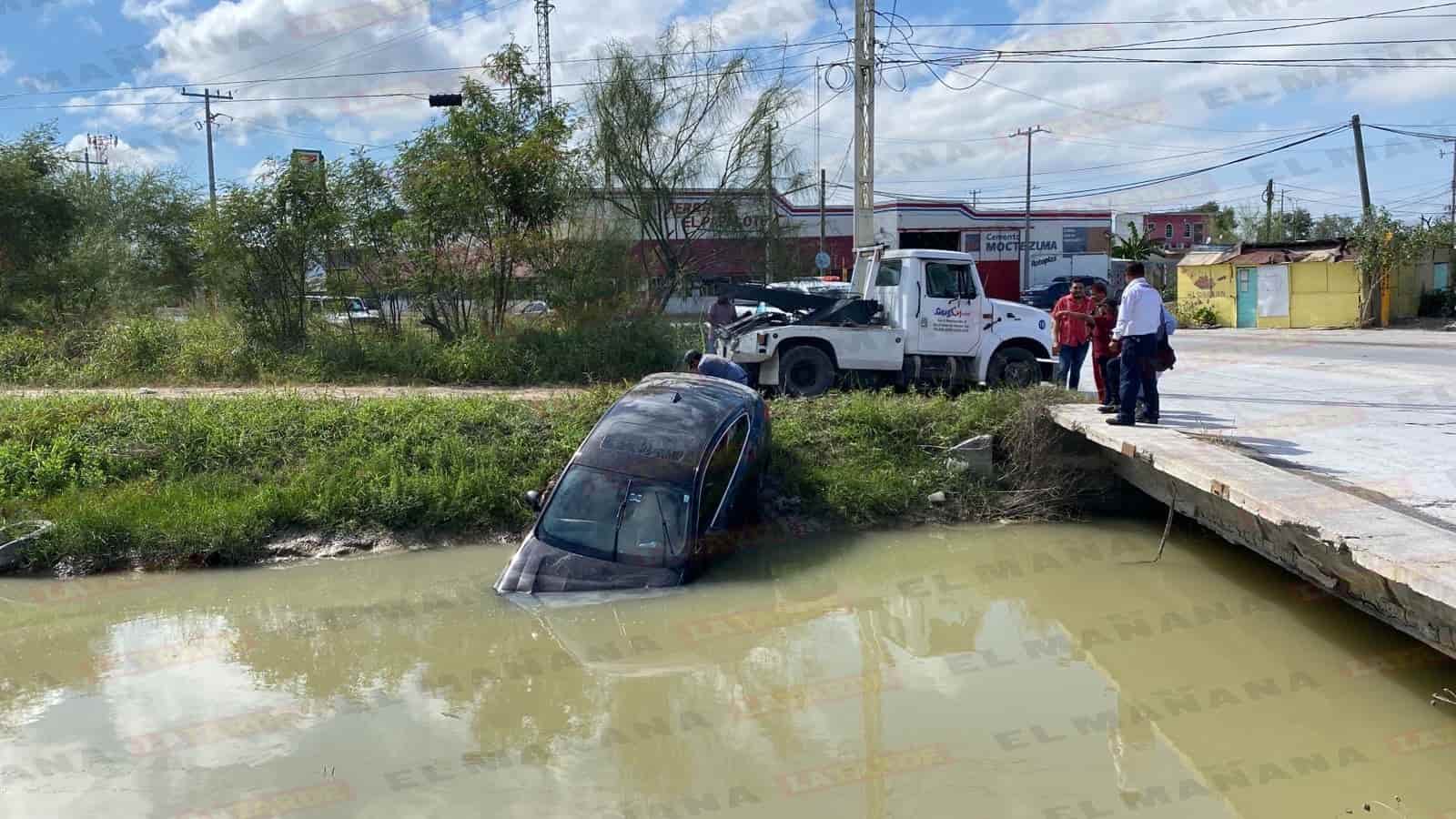 Reynosa, Tam.- Al evitar chocar una unidad que hacía alto en el semáforo, un conductor se proyectó en una camioneta de lujo a un canal de aguas negras.