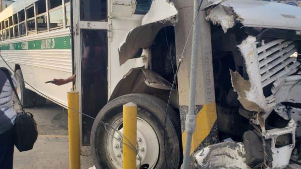 Trascendió en el lugar que la unidad de transporte público circulaba de norte a sur sobre la calle Praxedis Balboa y al llegar al cruce con la calle Río Mante se impacto contra un Nissan Máxima para posteriormente proyectarse contra el poste.