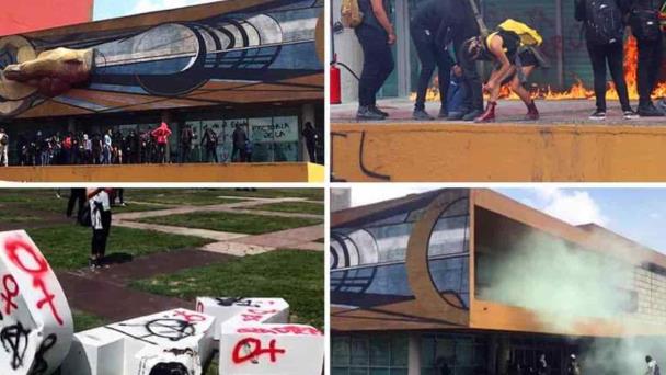 A través de un comunicado, la UNAM condenó lo que consideró "hechos violentos" provocados por un grupo de personas encapuchadas que "obedecen a una burda provocación montada contra la Universidad y al mismo tiempo pretenden desvirtuar el legítimo derecho de la manifestación pacífica".