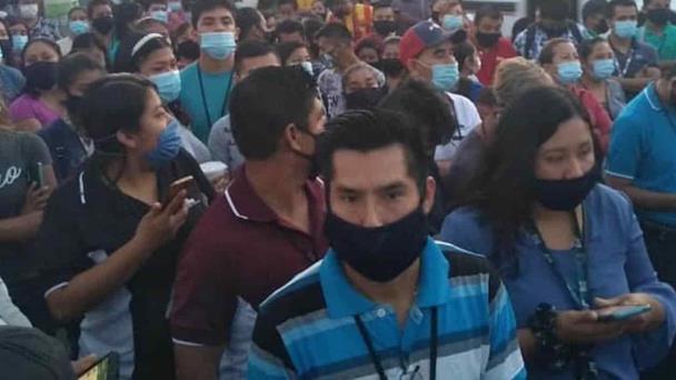 Desde las primeras horas de ayer los empleados se negaron a ingresar a laborar hasta que la empresa resolviera la problemática de sanitizar constantemente, ya que aseguran que no lo han llevado a cabo.