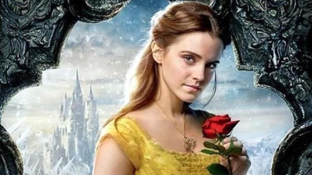 Dan Stevens, Emma Watson y Luke Evans aparecen caracterizados como La Bestia, Bella y Gastón, respectivamente