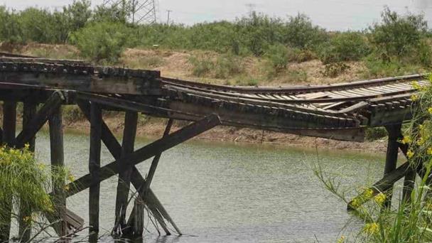 Puente aún en pie de milagro. Vetusta estructura pende de un hilo