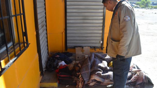 El indigente se encontraba envuelto en varias cobijas y traía su gorra y ropa de frío pero aun así la helada cobro su precio.