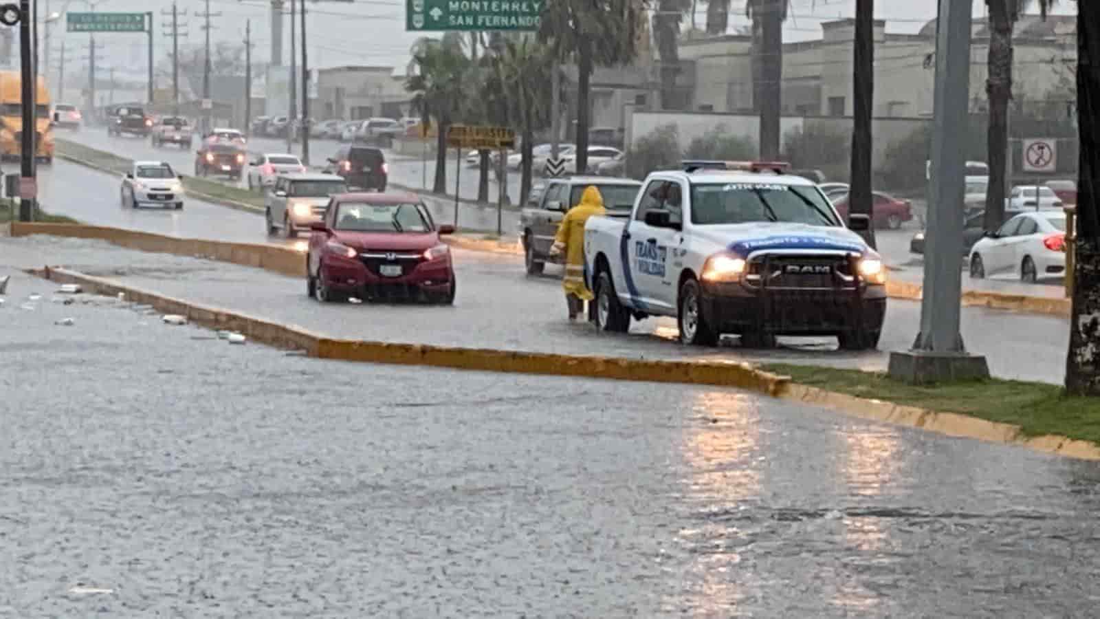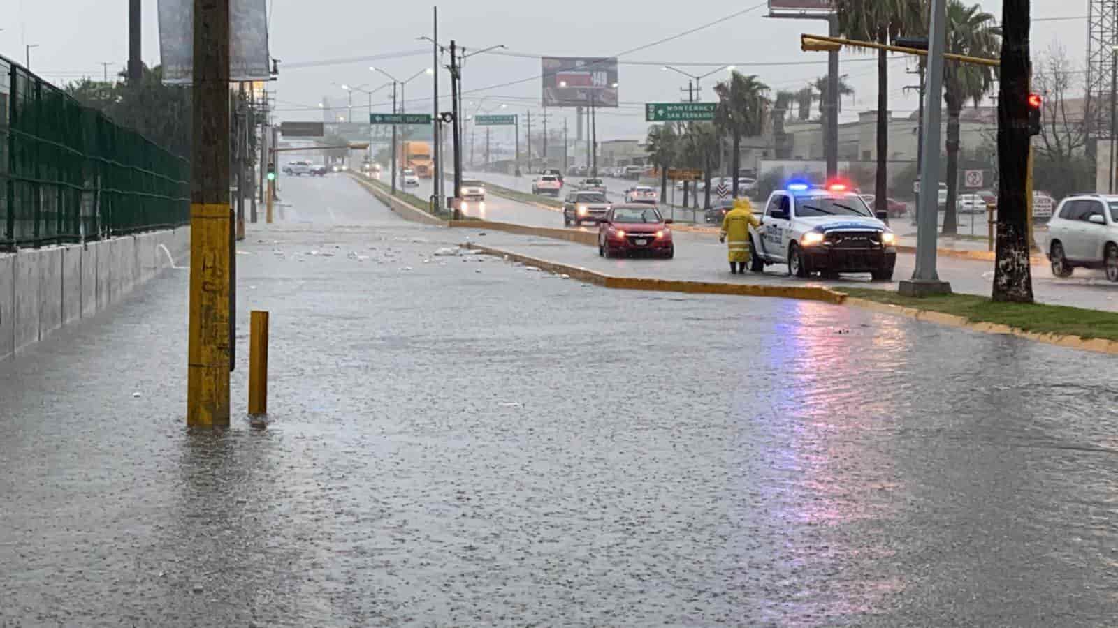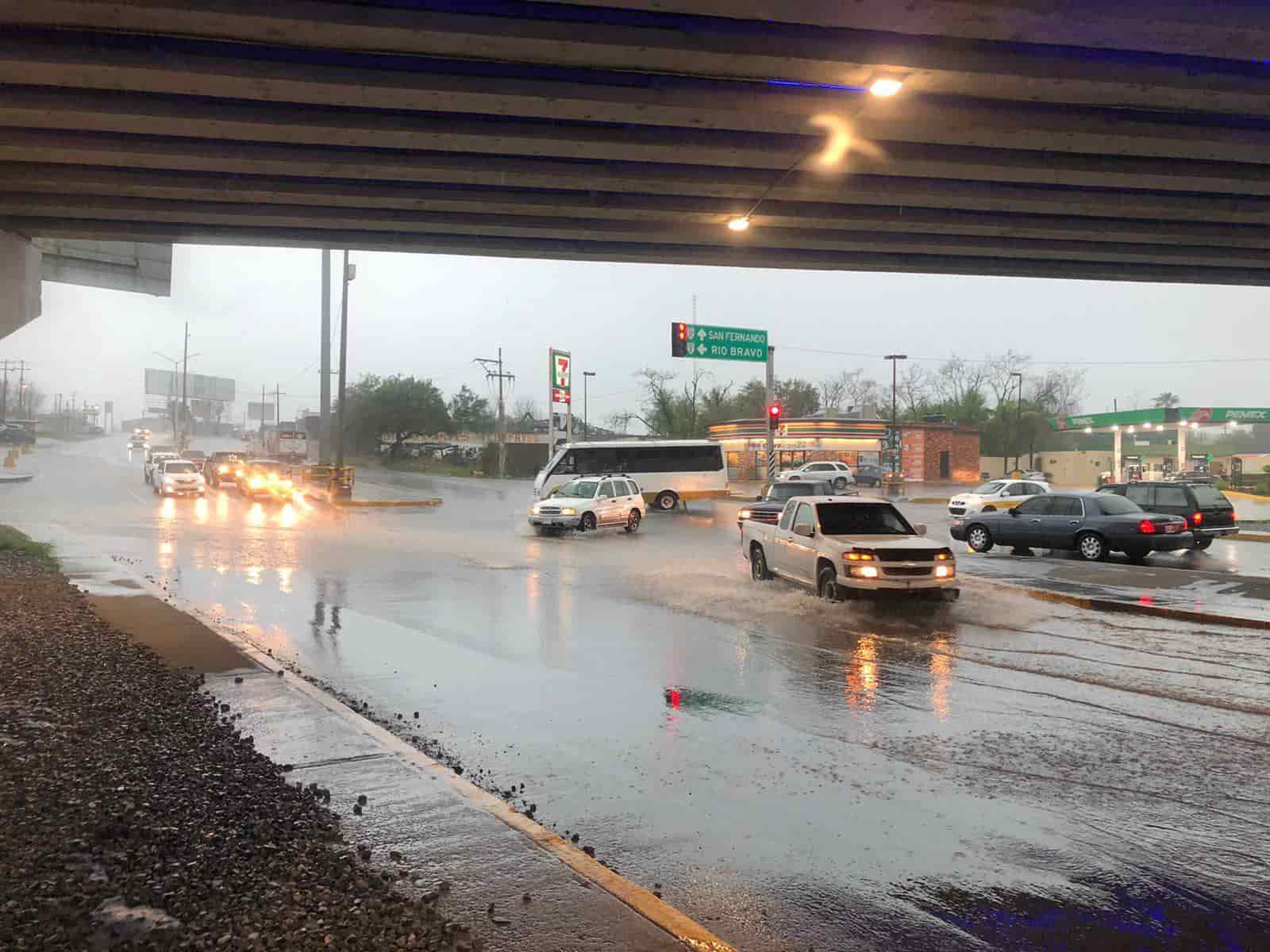 El punto donde se une el Libramiento Oriente, carretera a San Fernando, Monterrey y Rio Bravo desde las 11:00 horas evidenciaba altas corrientes, provocando que, los vehículos pasaran por laterales e incluso sobre las banquetas.