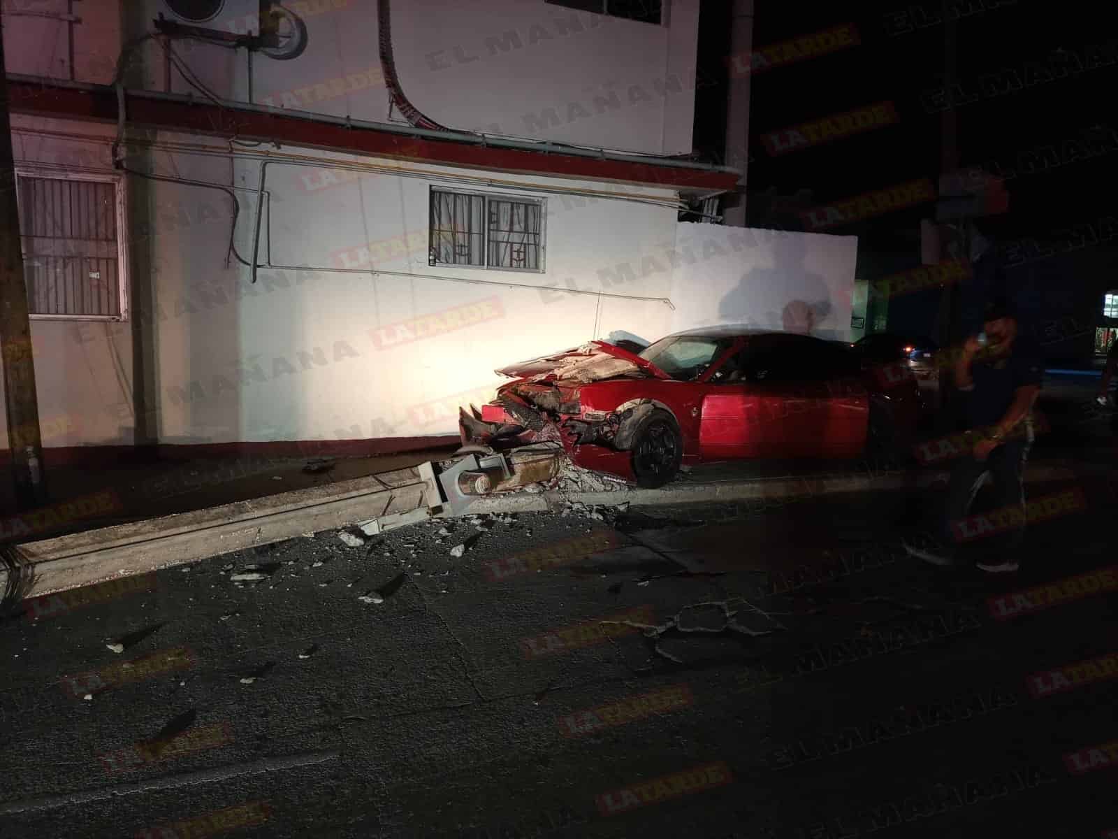 Tampico, Tam.- Convertido en chatarra quedó un auto deportivo al ser impactado por su imprudente conductor en contra de un poste el cual derribó con todo y transformador, dejando a nutrido sector sin energía eléctrica.