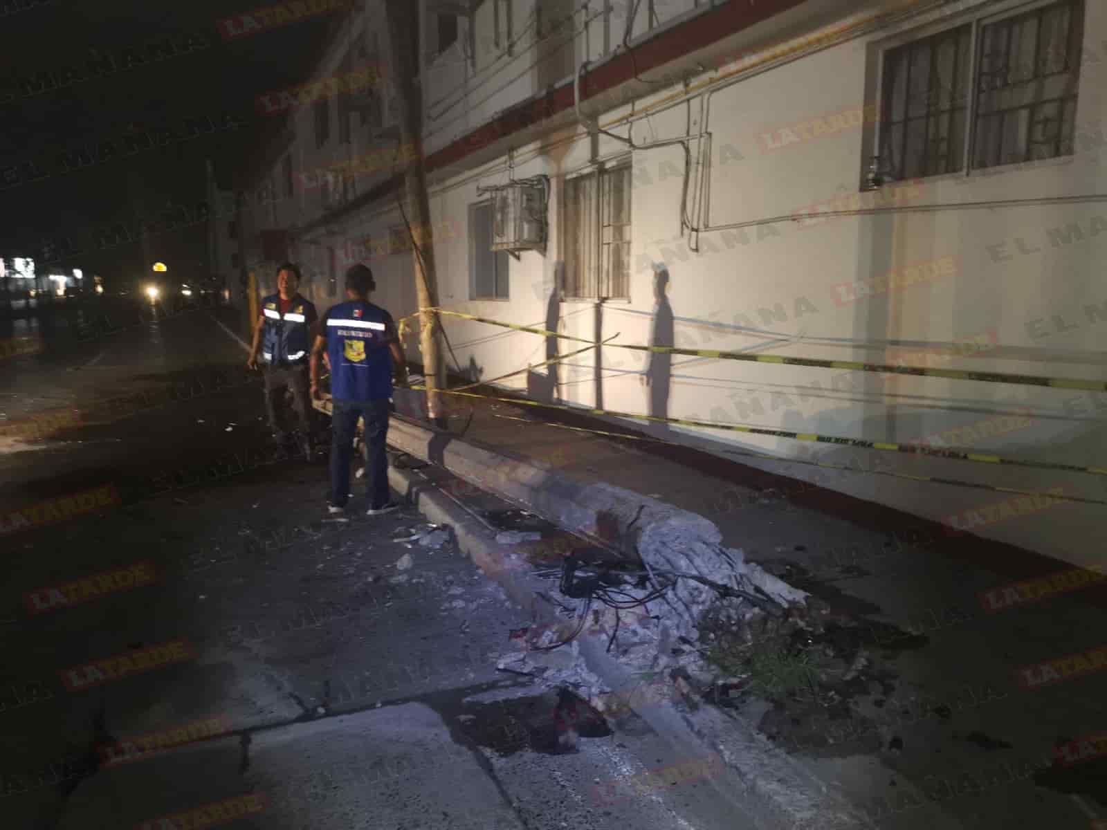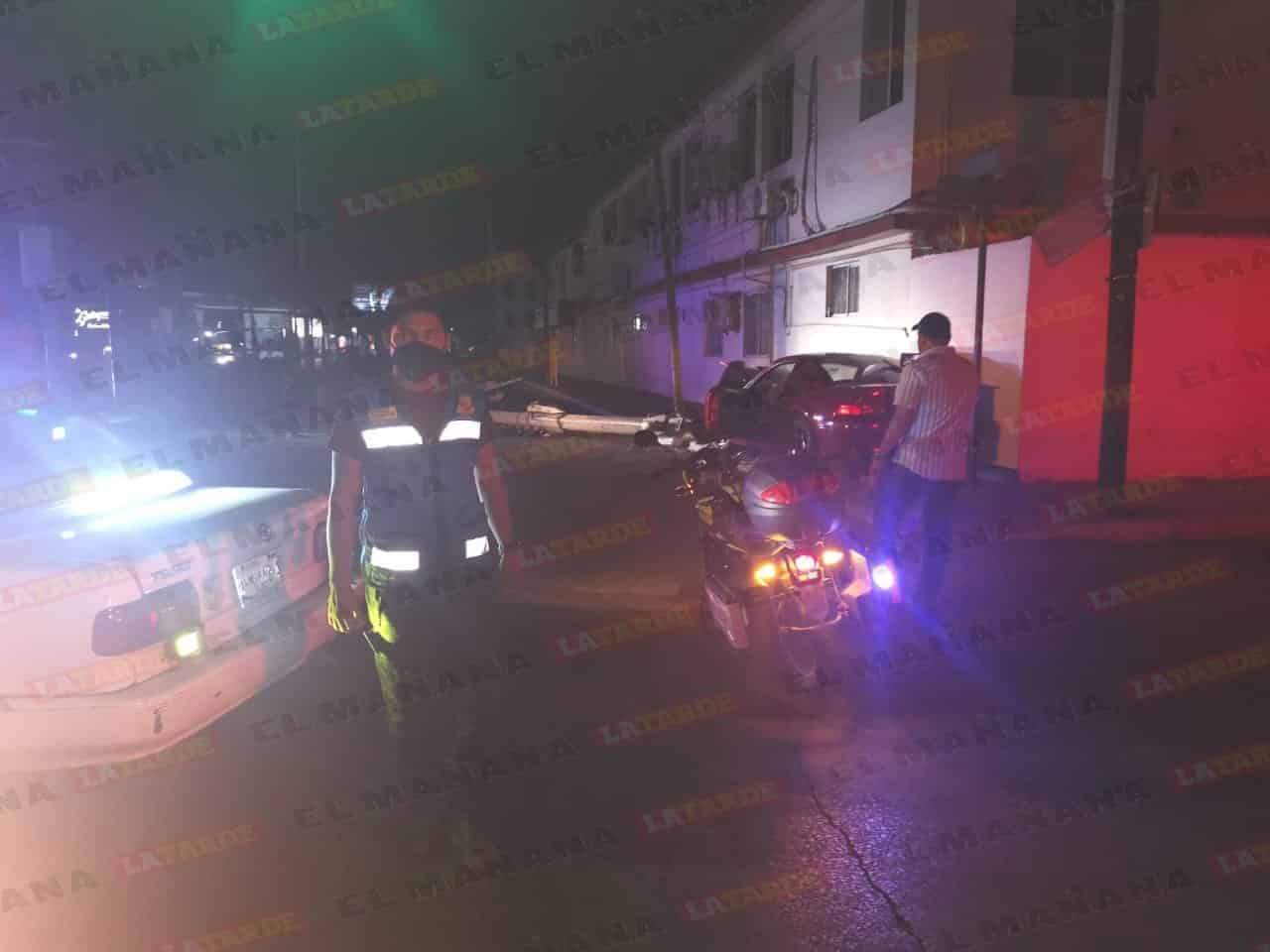 Dejó sin alumbrado público la avenida Universidad de la colonia Los Pinos en Tampico; su acompañante resultó con lesiones leves, siendo ambos valorados por paramédicos de Cruz Roja y no requirieron traslado a un hospital.