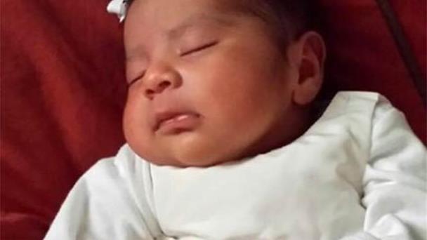 Las autoridades dieron a conocer una foto que muestra a la niña dormida sobre una cobija roja con un lazo blanco en la cabeza y un vestido blanco.