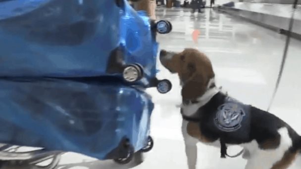 Los equipajes de los viajeros son revisados por los agentes del CBP con unidades caninas.