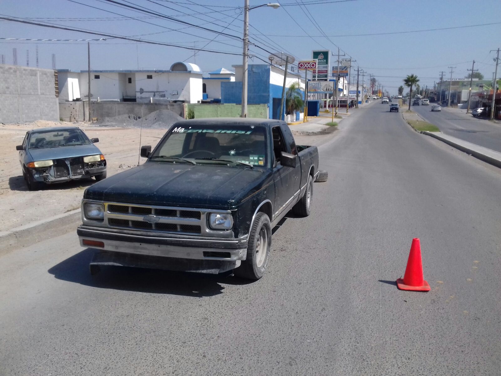 La camioneta tipo Pick Up marca Chevrolet circulaba con problemas de carburación, lo que generó varias explosiones que alarmaron a los Marinos, quienes se mantienen a la expectativa tras los hechos violentos del sábado pasado.
