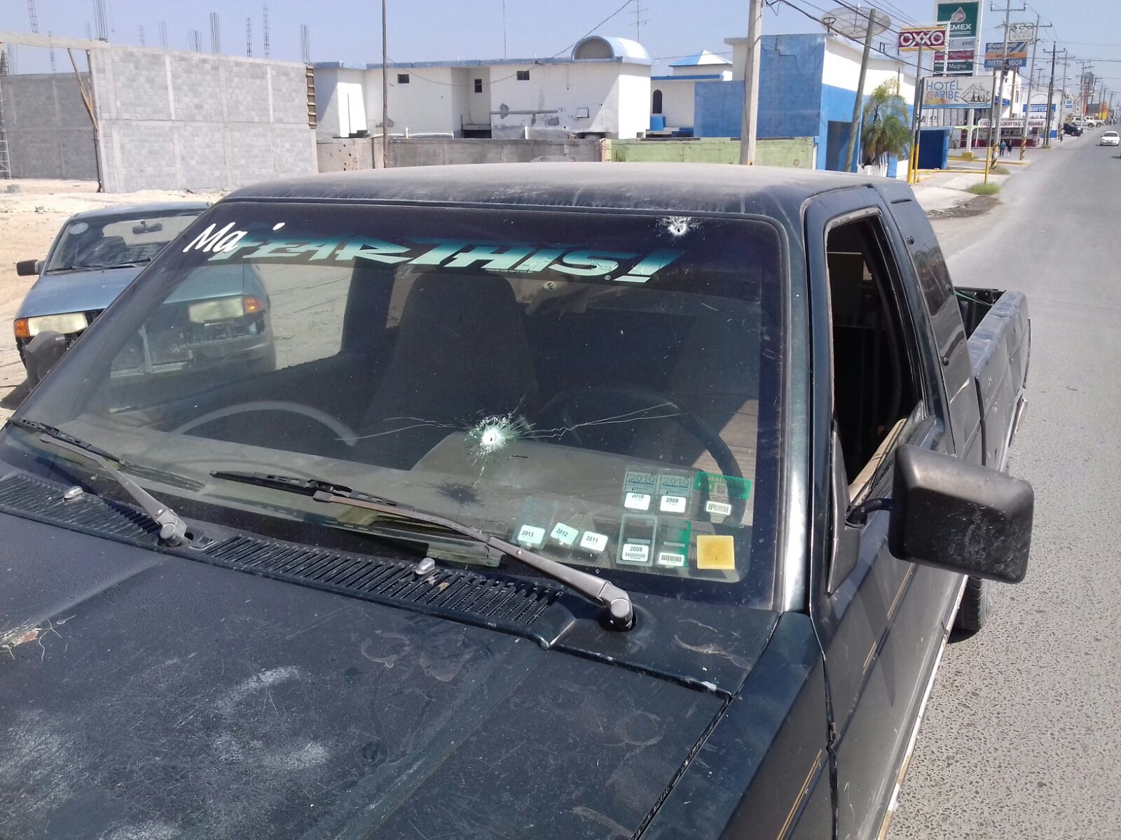 Impactos de bala. Explosiones en su camioneta por problemas de carburación presuntamente alarmaron a los Marinos quienes abrieron fuego contra el conductor de la unidad.