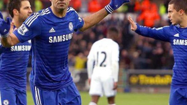 El Chelsea reforzó su liderato en la Premier League inglesa con una victoria por 5-0 en el terreno del Swansea, gracias sobre todo a sendos 'dobletes' de Oscar y Diego Costa en la primera parte, este sábado en la Jornada 22 del campeonato.