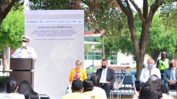 En un evento realizado en la Plaza 1 de Mayo Nuevo Laredo, estuvo presidido por el Contraalmirante Ramiro Lobato Camacho, en representación de la SEMAR: “El 21 de julio de 2020, la Secretaría de Marina-Armada de México aceptó la Recomendación No. 36VG/2020, emitida por la Comisión Nacional de los Derechos Humanos; ante lo cual, y como parte de las acciones para dar cumplimiento a la misma, el pasado 9 de abril, la Fiscalía General de la República ejecutó orden de aprehensión en contra de 30 elementos navales, a fin de que las autoridades encargadas de procurar y administrar justicia en México, sean quienes realicen las investigaciones correspondientes y resuelvan conforme a derecho”, señaló el representante de la dependencia.