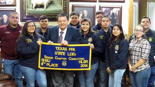 HOMENAJE. El alcalde de Mission, Norberto Salinas, entregó un reconocimiento a los alumnos FFA. (EL MAÑANA/Luis Suñer ).