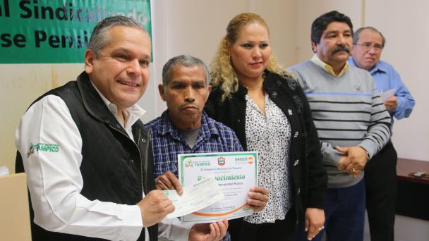 Tras refrendar la buena relación que mantiene el Sindicato Único de Empleados y Trabajadores del Republicano Ayuntamiento de Tampico (SUETRA), con la actual administración, el presidente municipal Gustavo Torres Salinas, hizo entrega a 12 empleados, de reconocimientos y el cheque correspondiente a la prima de antigüedad por más de 30 años de servicio.