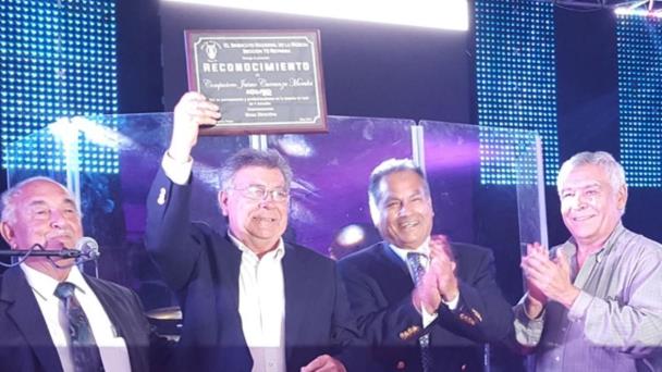 El Sindicato de Filarmónicos de Reynosa a cargo de Prisciliano Sánchez con gran satisfacción galardonaron a este artista por sus cuatro décadas en la música.