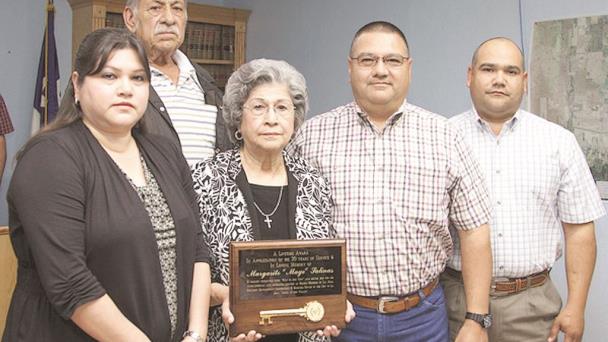 En un acto por demás solemne, funcionarios de la ciudad entregaron a la familia de Margarito “Mago” Salinas las llaves de la ciudad como reconocimiento a su trayectoria de Salinas servicio el pasado martes.