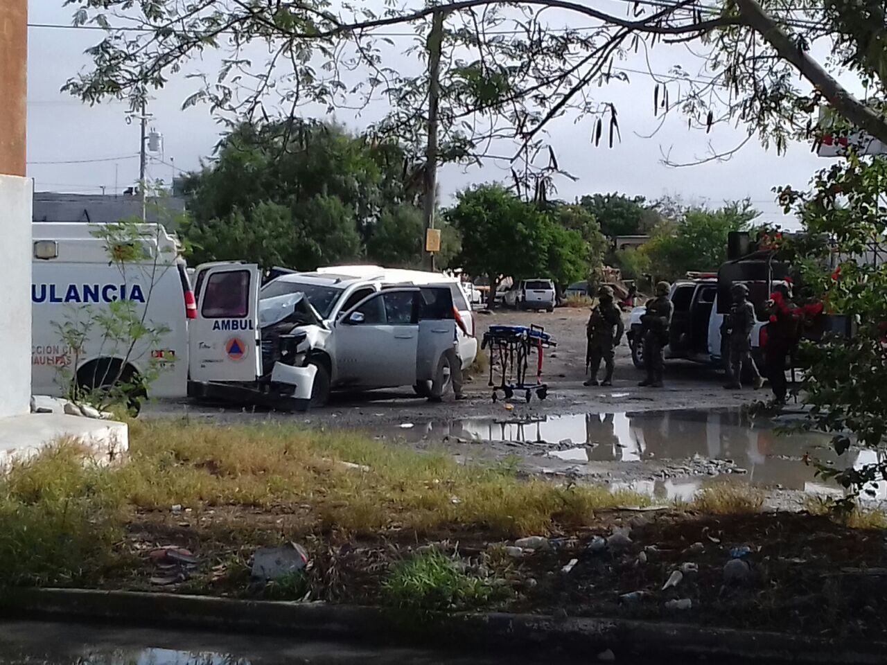Como resultado de este ataque un hombre está herido de bala en la cabeza, iba a bordo de una Chevrolet Tahoe color blanco, privado de su libertad por los tripulantes.