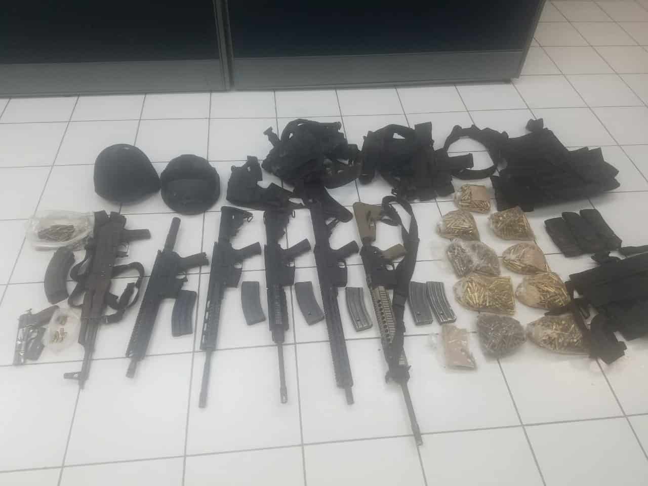 Al inspeccionar el inmueble se encontraron a las 6 personas privadas de su libertad y una mujer que vigilaba a los retenidos. Además, 6 armas de fuego, diversos cartuchos, equipo táctico y 3 vehículos, los cuales fueron asegurados y puestos a disposición de autoridades ministeriales junto con los detenidos.