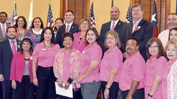 Laredo, Tx.- El cáncer de mama es la segunda causa de muerte entre mujeres y para apoyar a las que luchan contra el cáncer, 13 hombres participan en un programa especial donde visten de rosa en señal de respaldo.