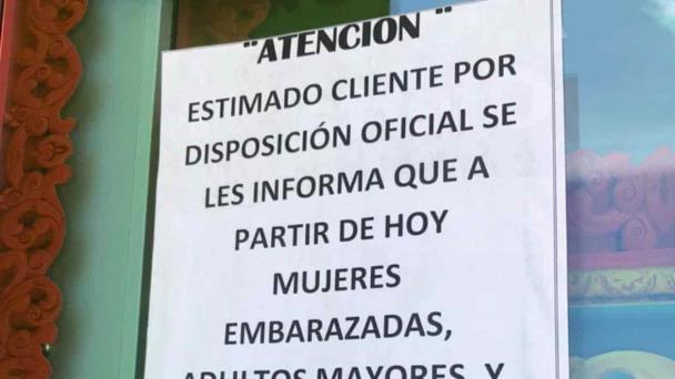 En las puertas de un establecimiento sobre el Bulevar Morelos, se indica que las mujeres embarazadas, adultos mayores y niños sólo pueden acceder de 6:00 a 12:00 horas, como una medida extra de prevención al Covid-19.