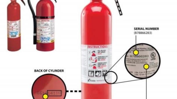Extintores con mango de plástico: El retiro del mercado abarca 134 modelos de extintores de incendios Kidde fabricados entre el 1 de enero de 1973 y el 15 de agosto de 2017, incluso los modelos que fueron retirados del mercado previamente en marzo de 2009 y febrero de 2015. Los extintores son rojos, blancos o plateados, y tienen la clasificación ABC o BC. El número de modelo está impreso en la etiqueta del extintor. En las unidades fabricadas a partir del 2007 en adelante, la fecha de fabricación es un código de fecha de 10 dígitos impreso en el costado del cilindro, cerca de la parte inferior. Los dígitos del quinto al noveno representan el día y el año de fabricación en formato DDDAA. Los códigos de fecha para los modelos retirados fabricados desde el 2 de enero de 2012 hasta el 15 de agosto de 2017 van del 00212 al 22717. Las unidades producidas antes de 2007 no tienen código de fecha impreso en el extintor.