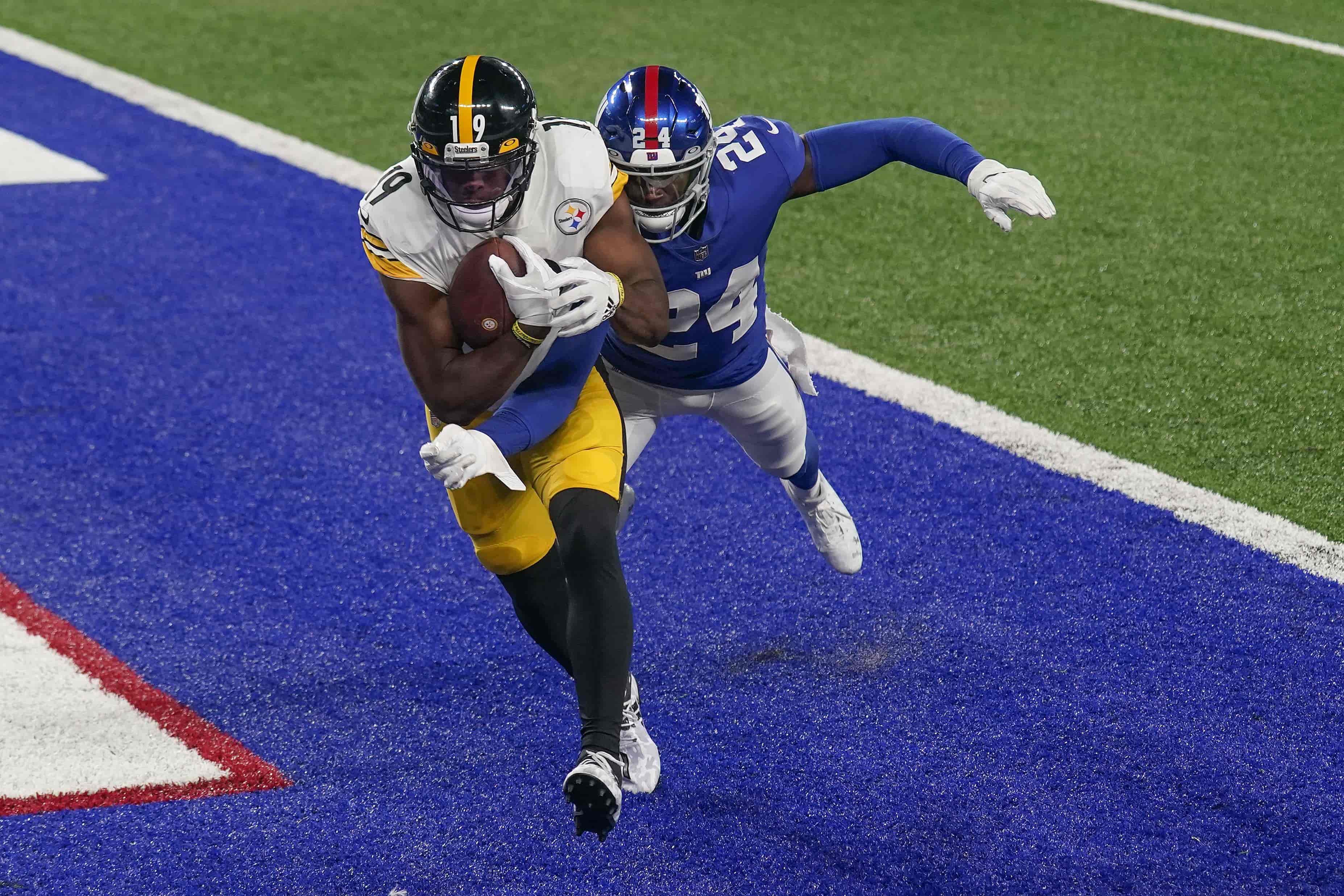El linebacker All-Pro T.J. Watt tuvo una astuta intercepción en la yarda 36 de Nueva York. Roethlisberger venció al disparo con un pase perfecto a JuJu Smith-Schuster para un touchdown de 10 yardas en el segundo cuarto. El intento de punto extra de Chris Boswell se estrelló en el poste y los Giants mantuvieron la ventaja de 10-9.