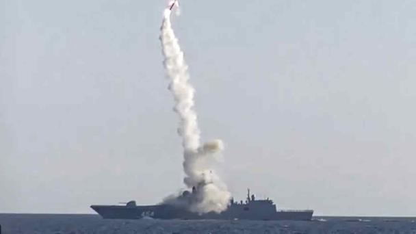 El misil se lanzó desde la fragata Almirante Groshkov, en el Mar Blanco, al norte de Rusia, según el Ministerio ruso de Defensa.