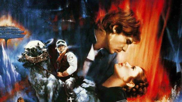 El afiche incluye a Han Solo cargando a la princesa Leia de manera similar al afiche de “Lo que el viento se llevó” en el que Rhett Butler carga a Scarlett O'Hara mientras están rodeados por llamas.