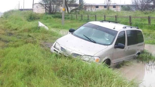 Río Bravo, Tam.- Carretera mojada, velocidad y pérdida de control, propiciaron que joven conductora saliera de la carretera en percance que tuvo lugar por la mañana a las 09:00 horas en carretera federal Matamoros-Mazatlán.