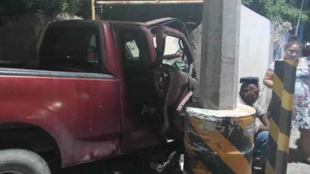 Contra la barda terminó impactado el conductor al perder el control del volante.