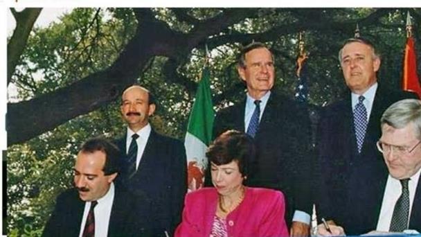El ex Mandatario hace un recuento de la negociación del tratado, de la que él fue partícipe. Recuerda que las circunstancias globales, como la caída del muro de Berlín, hicieron que México cambiara su posición respecto a negociar un TLC.