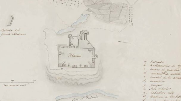Plano del Álamo en San Antonio Texas, Berlandier 1828.