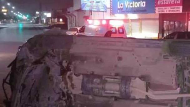 Cuantiosos daños materiales y posibles lesionados fue el saldo que arrojó una volcadura registrada la madrugada de este sábado, luego de que en estado etílico el conductor impacto la unidad contra la rotonda en la zona centro de la ciudad por la avenida Francisco I. Madero.