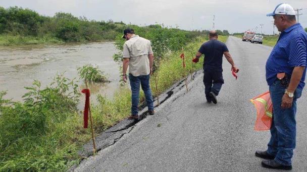 Sector de la carretera 82 en el kilómetro 139 está siendo afectado por la corriente del canal de desagüe que viene desde la ciudad de Matamoros