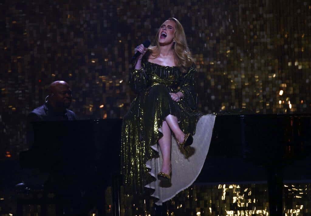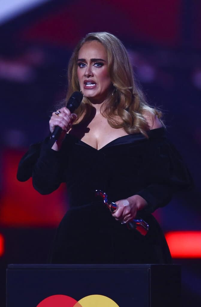 Adele no sólo impresionó al público del evento por su impactante atuendo negro y su interpretación en vivo del tema "I Drink Wine", sentada frente a un fondo dorado y acompañándose de cuatro músicos y tres vocalistas, sino también por el discurso que dio al recibir la presea a Artista del Año.