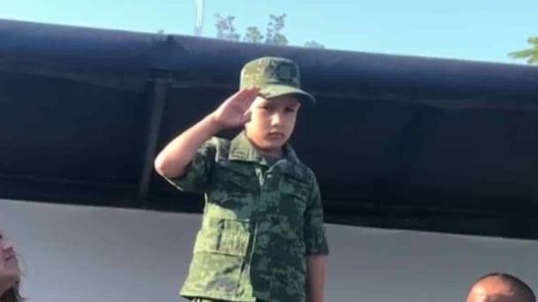 Unos cien militares entre mandos y tropa se le cuadraron al niño Oscar Carlos Campa Campos en la ceremonia “ Soldado por un Día”.