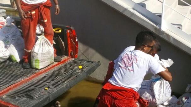 SELLAN. Con costales de tierra taparon el boquete que se formó en el Canal de la Cortadura.