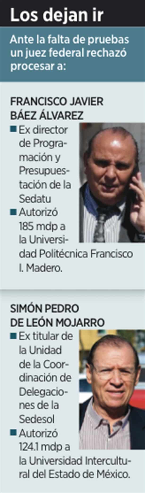 El juez Fernando Payá Ayala determinó no vincular a proceso a De León Mojarro por uso indebido de atribuciones y facultades, y a Báez por ejercicio indebido del servicio público, al estimar que el Ministerio Público no ofreció los datos mínimos suficientes.