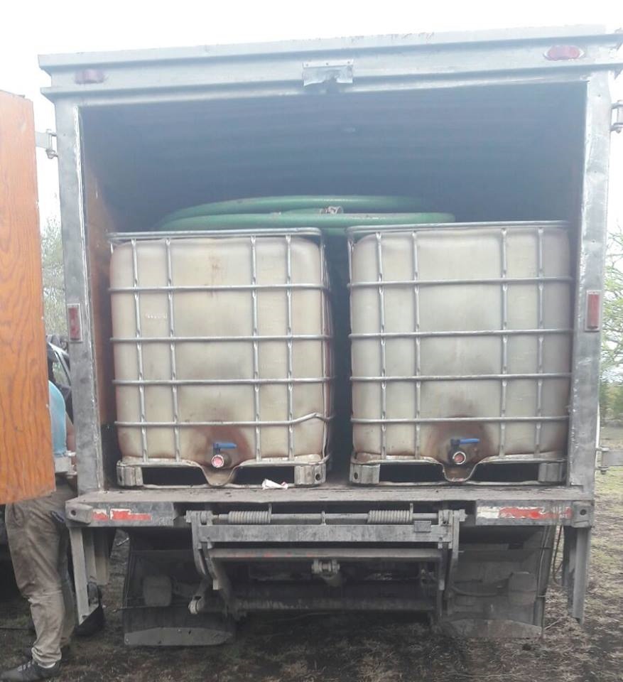 En el lugar, uno de los agresores quedó sin vida, el resto se dio a la fuga; posteriormente se procedió con el asegurar el perímetro, donde se detectaron tres pipas de 40 mil litros aproximadamente, además de una camioneta de doble rodada de 5 toneladas con 4 bidones de mil 100 litros y 12 bidones de 60 litros cada uno, además de una camioneta Chevrolet Suburban negra.